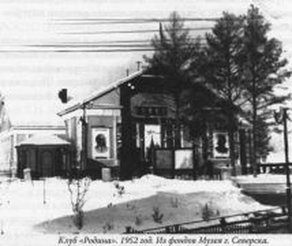 Клуб "Родина" Дата открытия: ноябрь 1951 г. Дата закрытия: середина 1960-х гг. Место расположения: на ул. Горького. Из книги: История Северска: очерки/ [редкол.: В. П. Зиновьев и др.]. - Северск: музей г. Северска, 2009. - С. 328-329. |