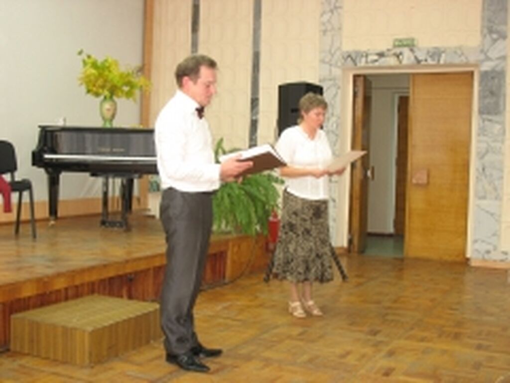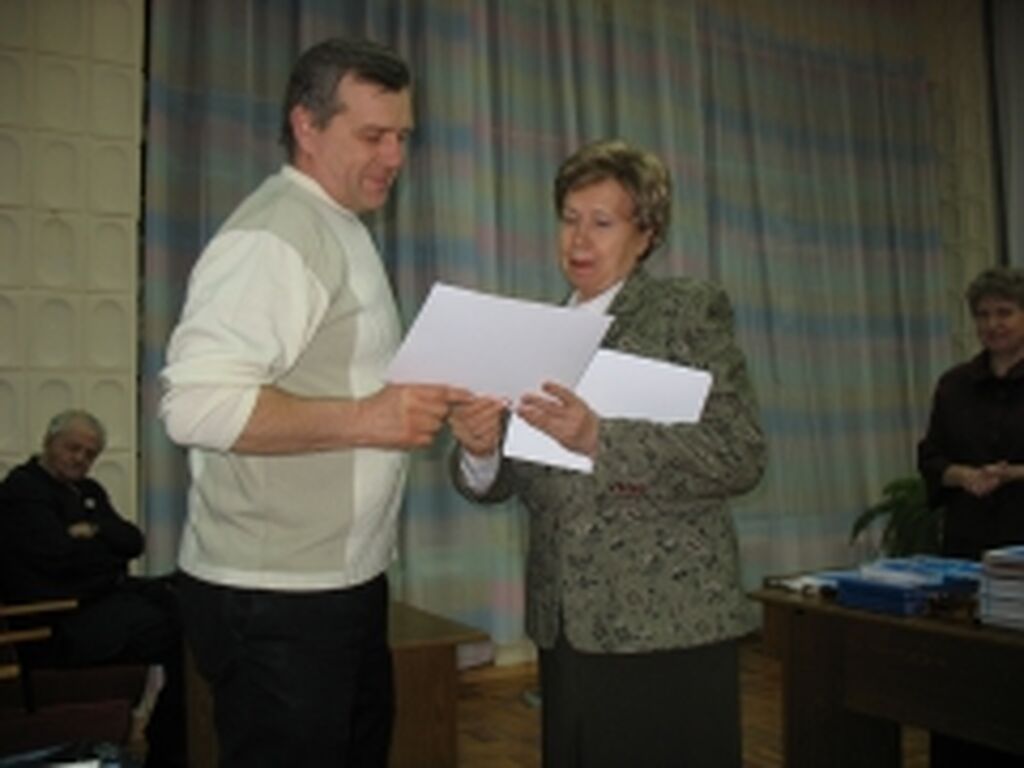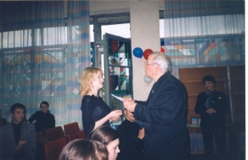В. И. Николаев вручает диплом победителю конкурса чтецов |