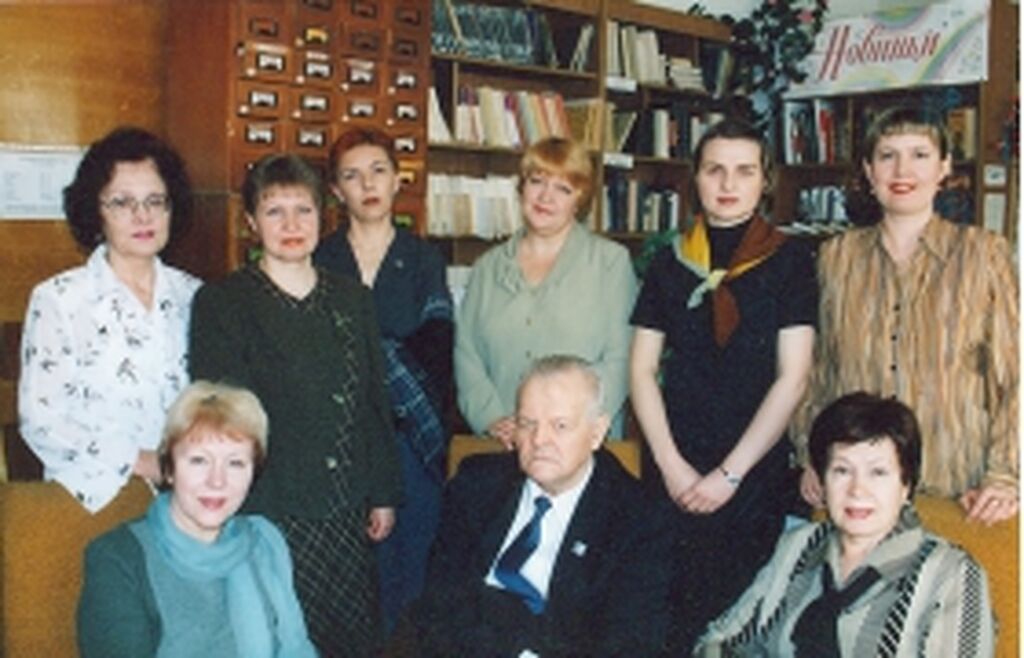 В. И. Николаев с работниками библиотеки В. И. Исаевой и В. Г. Солоненко и с журналистами А. Фадеевой (Улан-Уде), |